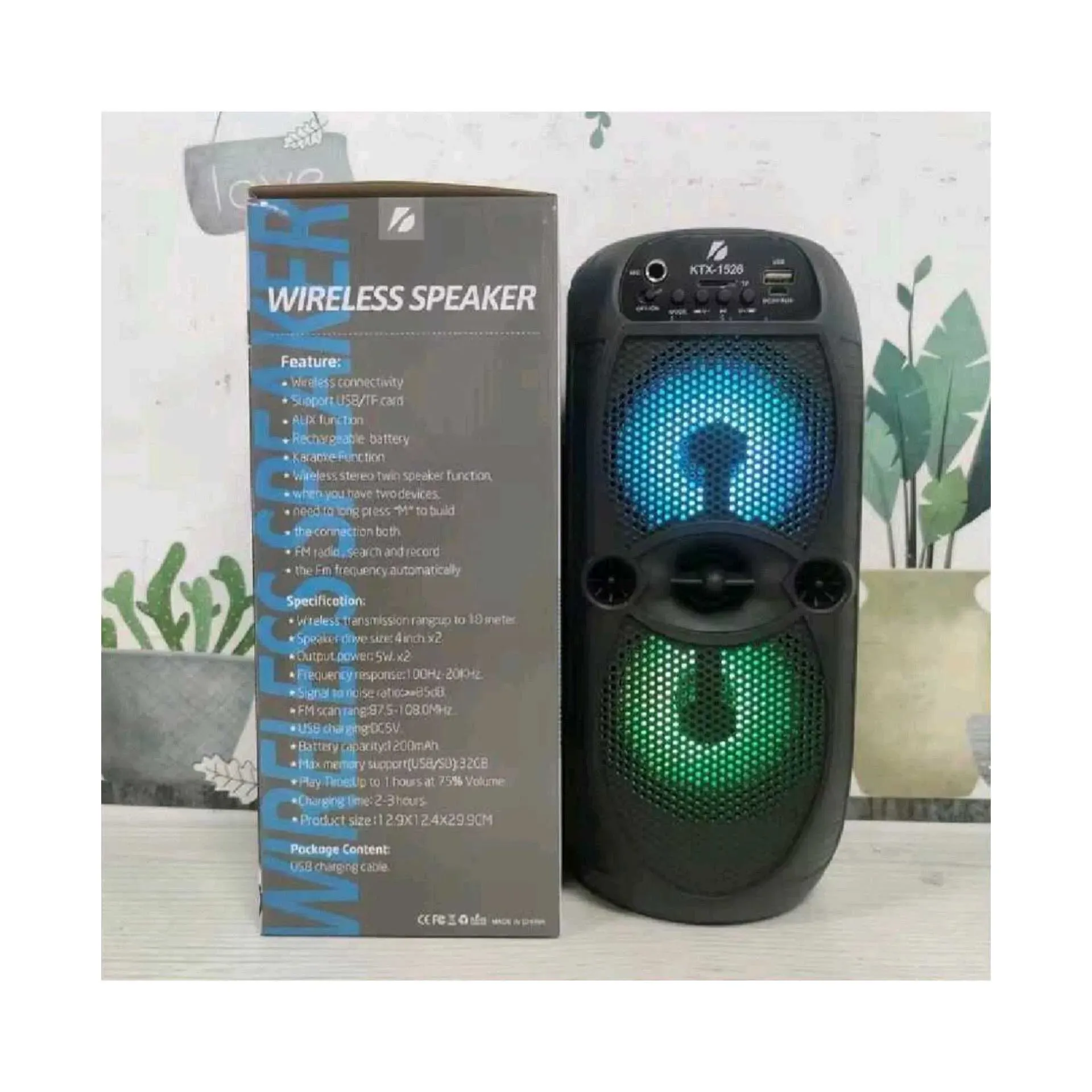 KTX-1526 cod-303336. PARLANTE KTX-1526 DOBLE 4" LUZ LED MP3 USB/SD/BT/TWS